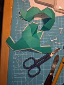 Le débutActuellement, après avoir acheté en Allemagne un livre de papercraft, je me suis mise à cette nouvelle technique…Il s’agit de construire en 3D diverses reproduction d’animaux, personnages, objets…. avec du papier cartonné que je vais découper, plier et coller en fonction des numéroIl s’agit d’une maquette du futur objet. Les étapes -choisir le modèle …